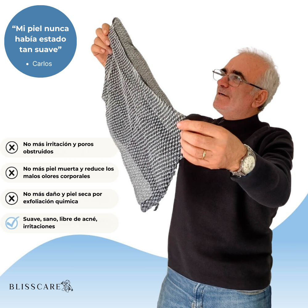 Infundida con 99,9% de iones de plata pura, la toalla Blissal evita la acumulación de bacterias y malos olores, convirtiéndola en la toalla exfoliante más limpia del mercado. Sin alergias ni riesgos.